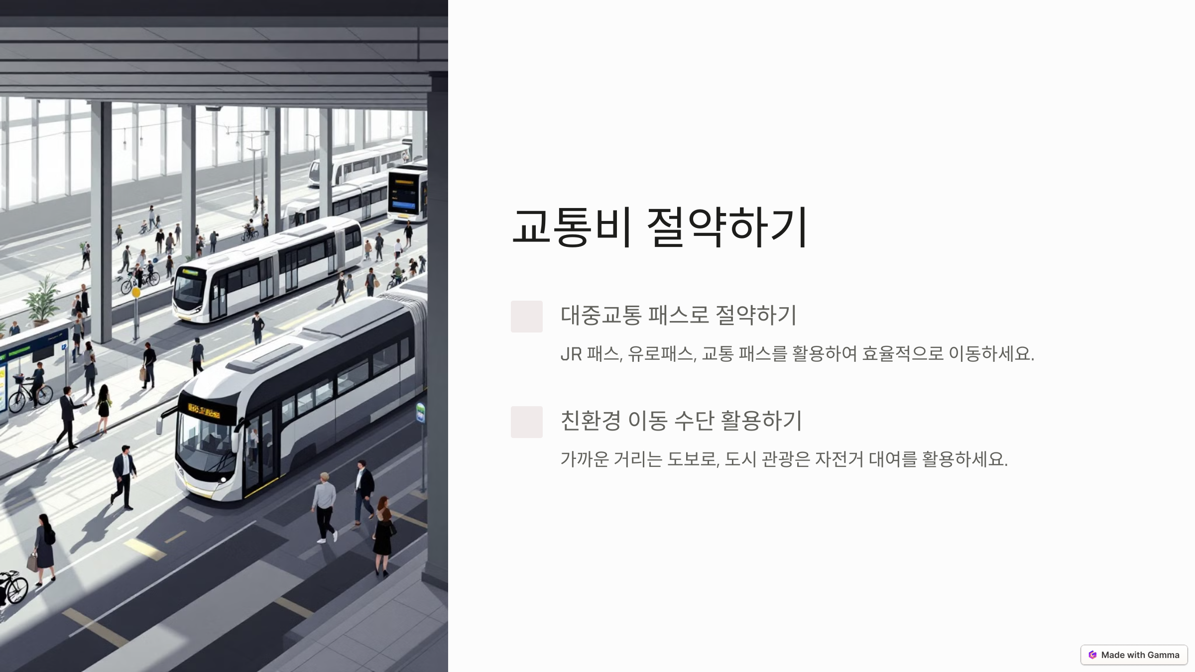 - 일본: JR 패스, 도쿄 메트로 패스 활용하면 교통비 절감